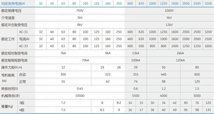 ◆ 额定功率接听作用(A Rms):10Ie