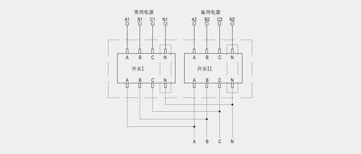 ◆ 开关内部控制电源额定电压为220V ,取自常用电源的C1.N1与备用电源C2.N2 ,在85%~110%的额定控制电压范围