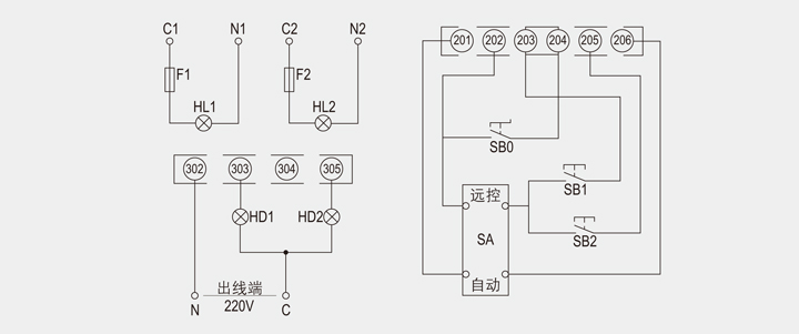 5.II型启闭的201-206绝缘端子可会按照应该采用相对应的工作接线图
