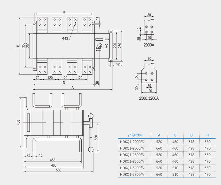 ◆ HDKQ1- 1000~3200A带风能发主轴电机接法