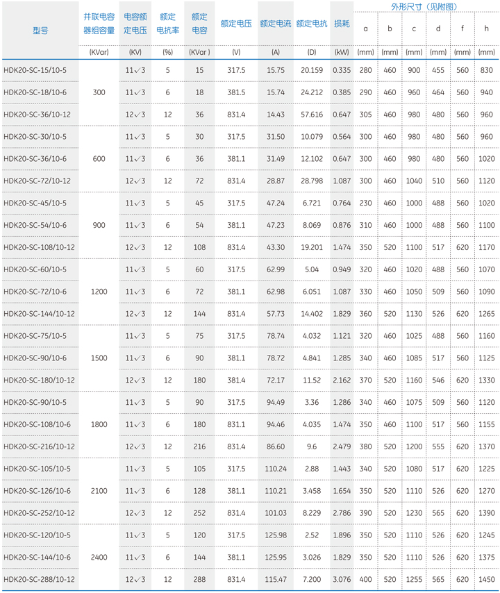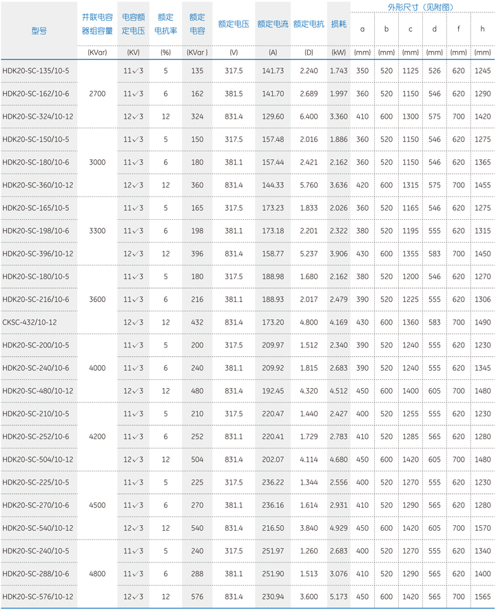 HDK20-SC 树脂绝缘干式串联电抗器系列技术参数