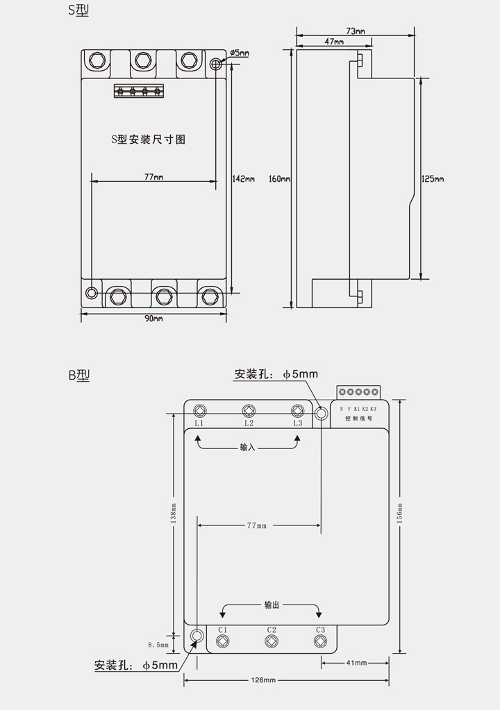 S型外观设计规格90mmX160mmX73mm 紧固规格77mmX142mm