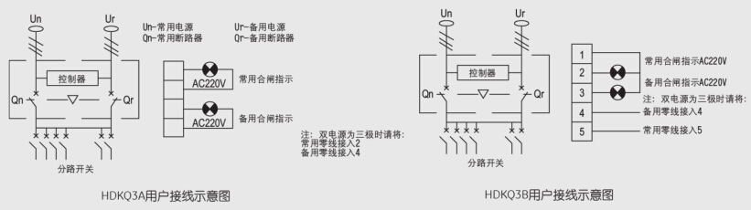 注:按照示意图选择使用合适的横截面的绝缘线将两大徽型负荷开关的进线端接好 ,且进线商品详情页相序有必要共同 。