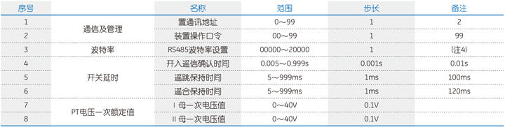 整定应依照相关联导则 ,本设备有层次性请求者见相关联参考文献标注 。设备规格中无层次性须得者 ,可出表格中列成的缺省值 。无需的呵护职能 ,应将其设定定值设为0—加入 。