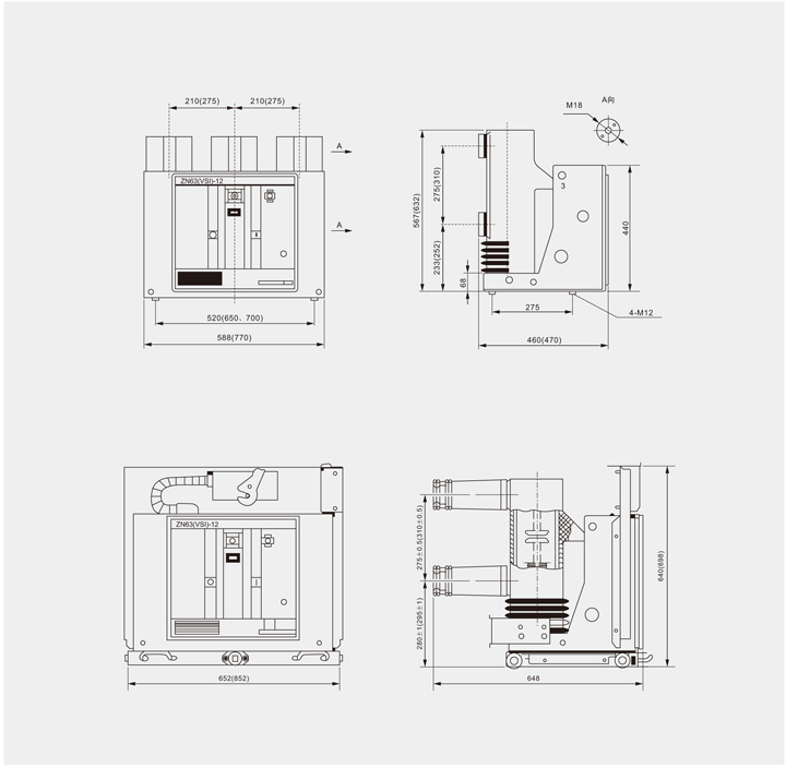 该断路器采用操动机构与断路器本体一体式设计 ,既可做为固定安装单元 ,也可配用专用推进机构 ,组成手车单元使用 。