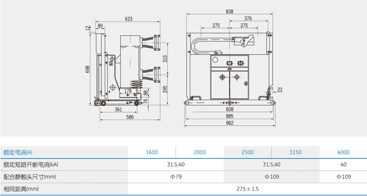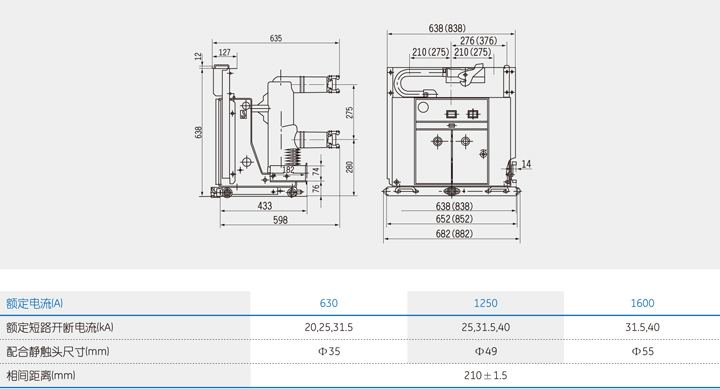 (括号内尺寸为相距275mm的配小电流1000宽柜子的图)