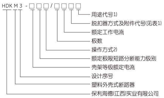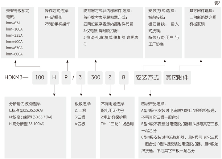 注:(1).配电用断路器无代号;保护电动机用断路器以2表示 。