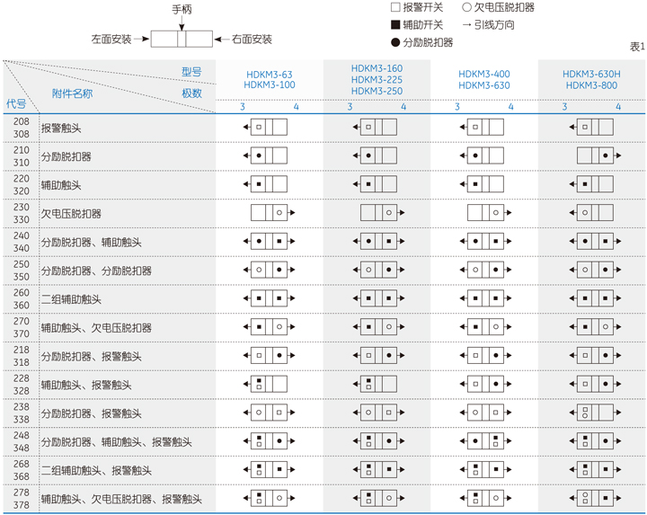 2、对HDKM3-100、225二极产品只有210、310、220、320、230、330;对HDKM3-100、225四极断路器无218、318、248、348,