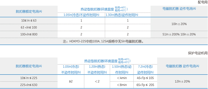 漏电断路器热动型脱扣设施有反有效期限形态;磁感应脱扣器为瞬时姿态 ,形态见下表(配电盘用)及(保障自主观因素用) 。
