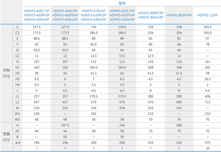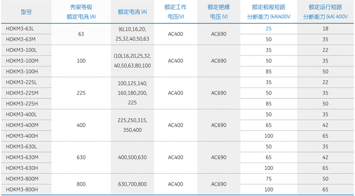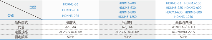 HDKM3-225 为 100、125、140、160、180、200、225A 7级;