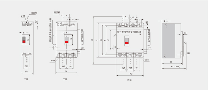 按品牌设备极数包括二极(100A、225A)三极与四极(HDKM3-800无3级) 。四极品牌设备中性极(N极)的结构分4类: